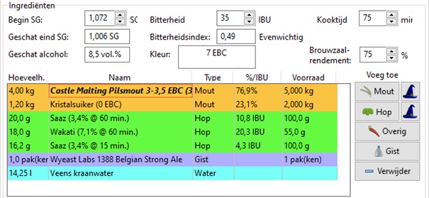Ik kwam er achter dat de recepten uit Brouwhulp niet 1 op 1 geïmporteerd worden in de Brew Monk app dus goed in de gaten houden dat de stappen wel kloppen.