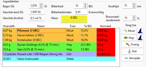 Het begin SG en eind SG waren iets lager maar dat was niet van invloed op het alcohol persentage van 8,5%